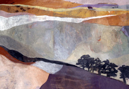 Most paintings, including "Strata" on the left are done in casein and tempera, two of the oldest painting media in existence. They dry to a matte finish, somewhat similar to that of a fresco, and are protected with matte varnish. To achieve a sense of time's passage, the paintings are scraped and abraded with sandpaper and x-acto blades. The work is on framed archival panels, and currently ranges in size up to 66"x84". In addition to the work sold by the galleries listed, commissions are undertaken through the galleries for specific clients and sites. |